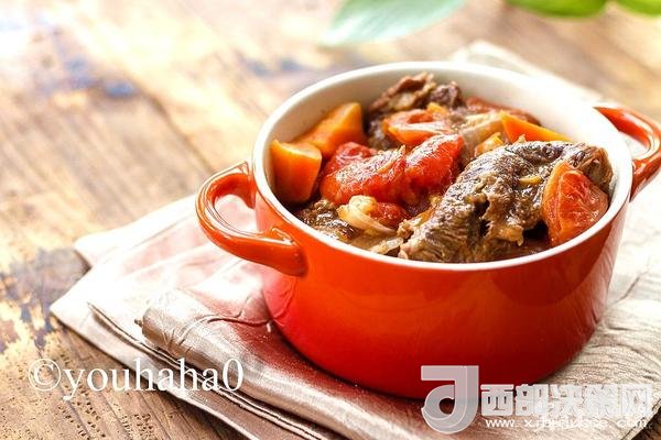 食材:牛腩500克,西紅柿800克,洋蔥一個(gè),胡蘿卜一個(gè),紅酒100克,鹽8克,植物油2湯匙。