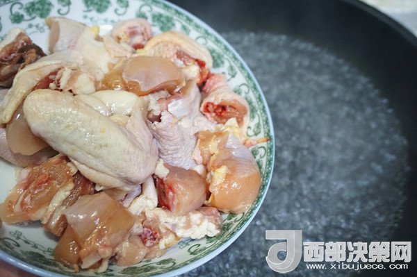 2、坐熱一鍋沸水,下雞塊焯一下,去掉浮沫。