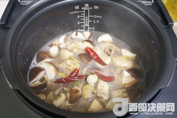 7、短短的20分鐘時(shí)間,噴香的香菇燉雞就做好了,而且這款鮮呼吸電壓力鍋,自動(dòng)排壓,如果你中間補(bǔ)充食材或調(diào)味料,還有貼心設(shè)計(jì)的中途加菜,保證不同食材的最佳口感。