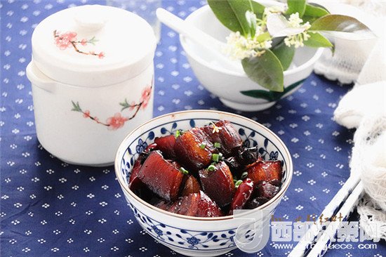 12.可樂紅燒肉盛起,撒點兒蔥花,即可食用