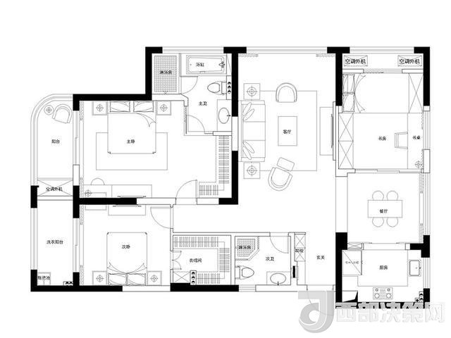 主臥非常的大,就是客廳小了點。面積空間沒有充分的利用起來,做了3個房間加1個衣帽間,房間夠住了。房子的戶型很房子,除了衣帽間沒有采光,其它地方都是有帶窗戶采光的。
