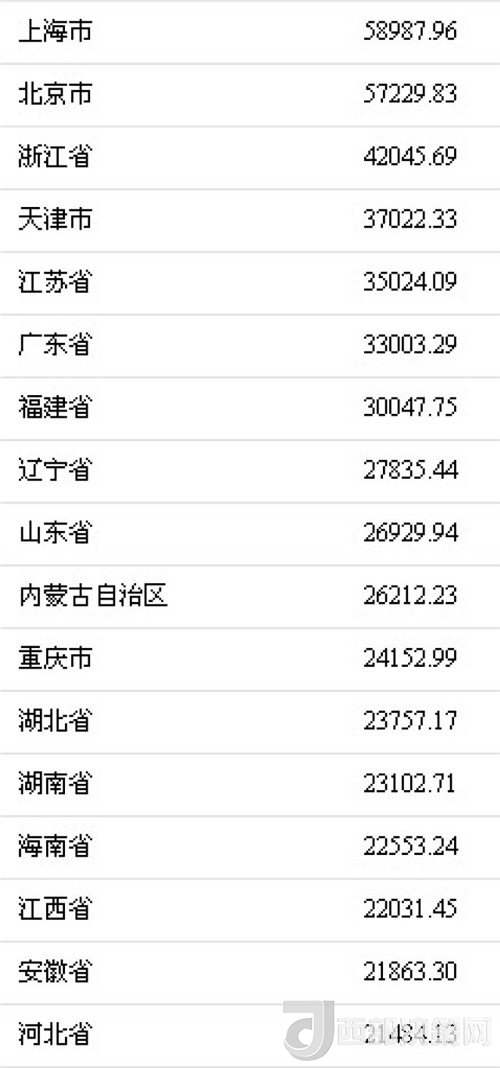 國(guó)家統(tǒng)計(jì)局近日公布了31個(gè)省份2017年居民人均可支配收入。數(shù)據(jù)顯示,10省份人均可支配收入超過(guò)全國(guó)水平。上海、北京2017年居民人均可支配收入逼近6萬(wàn)元大關(guān),上海以58987.96元位居全國(guó)首位。