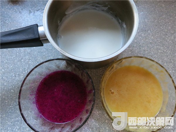 4.必須是在一種果汁凝固后才可以將另一種汁加入,否則容易混色。