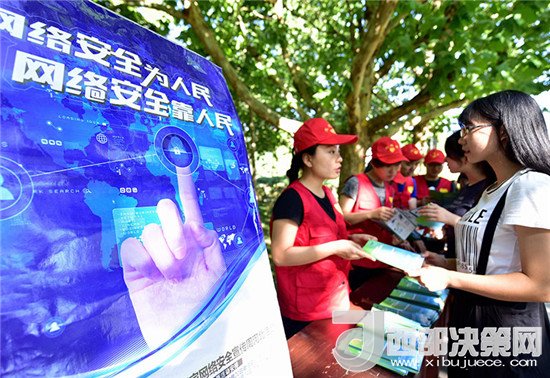 河北省廊坊市安次區(qū)網(wǎng)信辦工作人員和志愿者向?qū)W生們發(fā)放網(wǎng)絡(luò)安全宣傳折頁,倡導(dǎo)廣大師生提高網(wǎng)絡(luò)安全意識,共同維護(hù)網(wǎng)絡(luò)社會(huì)秩序(2017年9月19日攝)。新華社記者 王曉 攝