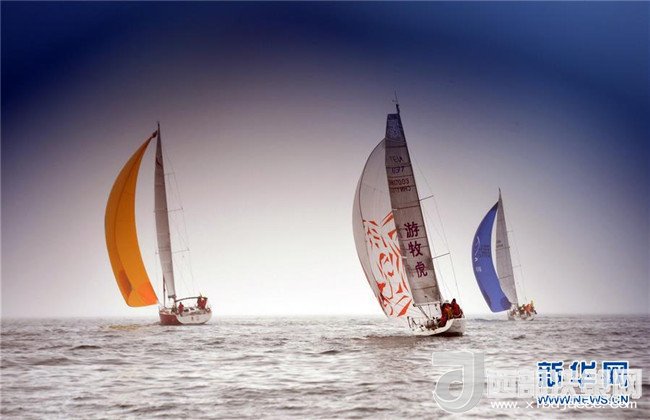 參賽賽船在2016年第七屆環(huán)海南島國際大帆船賽三亞-海口拉力賽的比賽中(2016年3月14日攝)。新華社記者 楊冠宇 攝