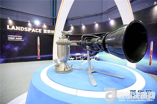 現(xiàn)場展示的藍箭航天商業(yè)運載火箭發(fā)動機等比例模型。新華網(wǎng)才萌攝