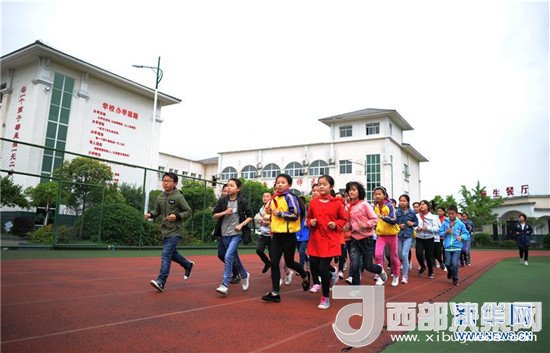 4月25日,陜西省勉縣溫泉鎮(zhèn)中心小學(xué)學(xué)生在塑膠操場(chǎng)上進(jìn)行體育課前熱身活動(dòng)。