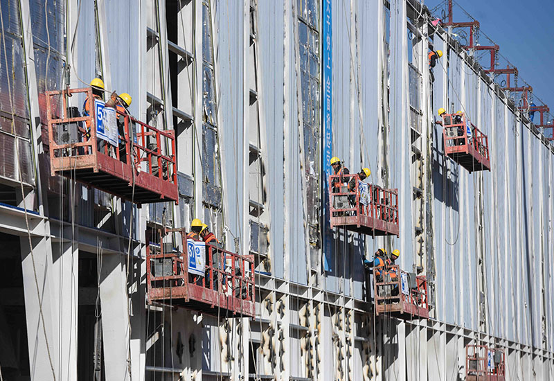 建設(shè)者在雄安市民服務(wù)中心項(xiàng)目現(xiàn)場(chǎng)施工(2月12日攝)。 新華社記者 申宏 攝