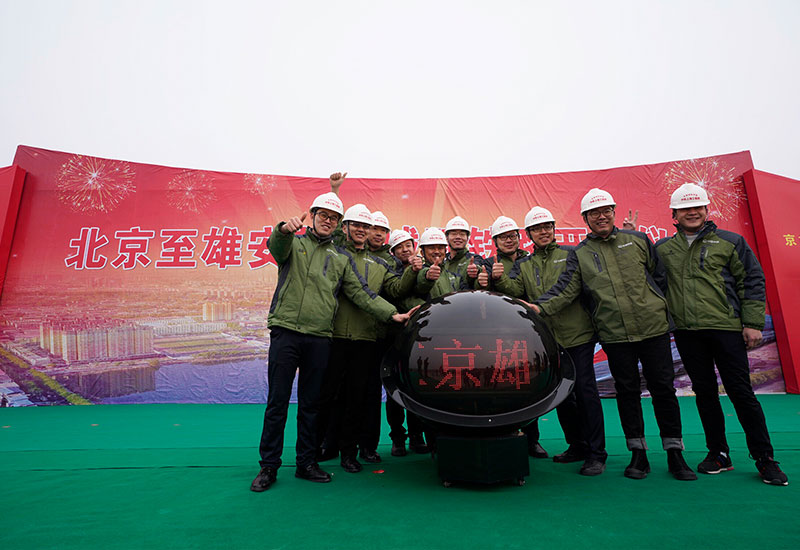 河北雄安新區(qū)首個(gè)重大交通項(xiàng)目北京至雄安城際鐵路(簡(jiǎn)稱“京雄城際鐵路”)正式開工建設(shè),這是建設(shè)者在開工儀式現(xiàn)場(chǎng)合影留念(2月28日攝)。新華社記者 邢廣利 攝