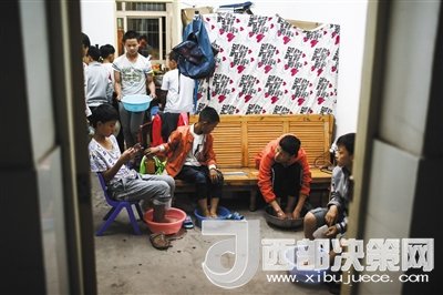 睡覺前,因?yàn)閷嬍覜]有熱水,球隊(duì)里的小球員來(lái)到馬順洗的房間里洗腳。