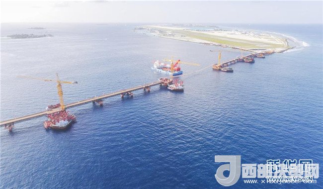 這是2017年7月6日俯拍的馬爾代夫中馬友誼大橋建設(shè)現(xiàn)場。中馬友誼大橋于2016年初正式動工,是中馬共建“一帶一路”的重要合作項目。作為馬爾代夫有史以來第一座大橋,同時也是印度洋上第一座跨海大橋,中馬友誼大橋連通馬爾代夫首都馬累和機場島,由橋梁、填海路堤及道路等組成,使用壽命100年。新華社發(fā)