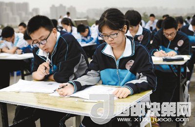 27日,來(lái)自西安各區(qū)縣的中學(xué)生在西安大明宮含元殿遺址進(jìn)行筆試答題。