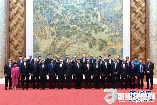 6月21日,國(guó)家主席習(xí)近平在北京釣魚臺(tái)國(guó)賓館會(huì)見來華出席“全球首席執(zhí)行官委員會(huì)”特別圓桌峰會(huì)的知名跨國(guó)企業(yè)負(fù)責(zé)人,并同他們座談交流。新華社記者丁林?jǐn)z