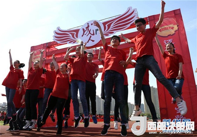 安徽淮南市第二中學學生穿越“成人門”(2018年5月4日攝)。新華社發(fā)(陳彬 攝)