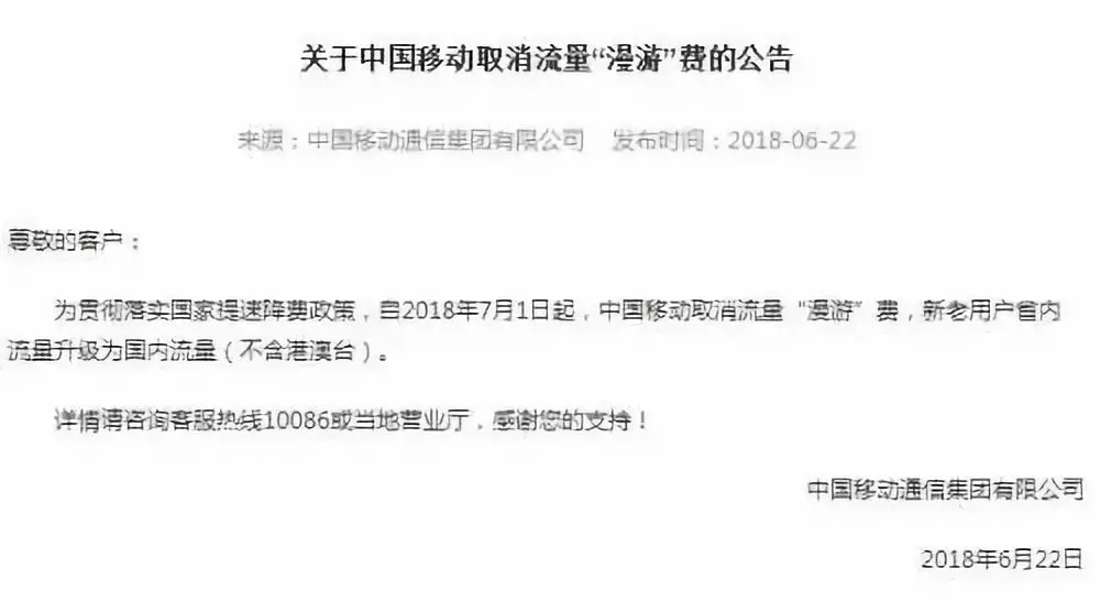 7月1日起取消流量“漫游”費