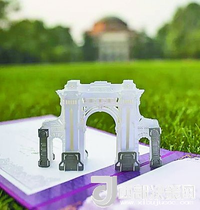 他輕輕打開印有清華大學(xué)?;盏淖仙鈿?,一座獨(dú)具設(shè)計感的清華地標(biāo)微型二校門躍然紙上。