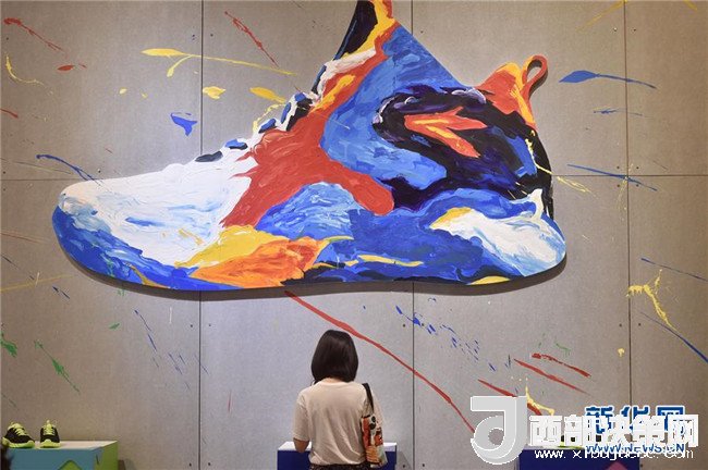 在一年一度的中國(晉江)國際鞋業(yè)暨國際體育產(chǎn)業(yè)博覽會上,一位客商在了解安踏運動鞋(2017年4月18日攝)。新華社記者 宋為偉 攝