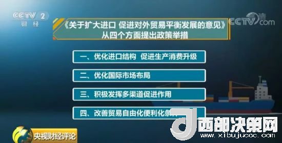 日前,國務(wù)院辦公廳轉(zhuǎn)發(fā)商務(wù)部等20個(gè)部門《關(guān)于擴(kuò)大進(jìn)口 促進(jìn)對(duì)外貿(mào)易平衡發(fā)展的意見》。《意見》從四個(gè)方面提出政策舉措:一是優(yōu)化進(jìn)口結(jié)構(gòu),促進(jìn)生產(chǎn)消費(fèi)升級(jí);二是優(yōu)化國際市場布局;三是積極發(fā)揮多渠道促進(jìn)作用;四是改善貿(mào)易自由化便利化條件。其中,在優(yōu)化進(jìn)口結(jié)構(gòu)方面,提出了四個(gè)方向,包括:支持關(guān)系民生的產(chǎn)品進(jìn)口、積極發(fā)展服務(wù)貿(mào)易、增加有助于轉(zhuǎn)型發(fā)展的技術(shù)裝備進(jìn)口、增加農(nóng)產(chǎn)品和資源性產(chǎn)品進(jìn)口。