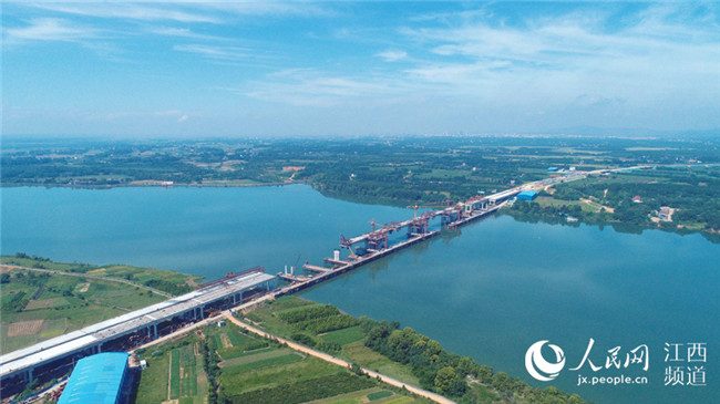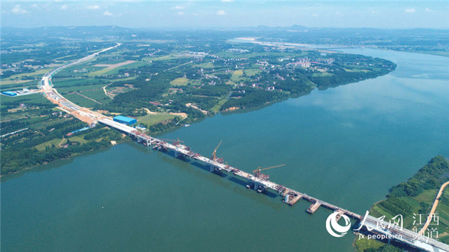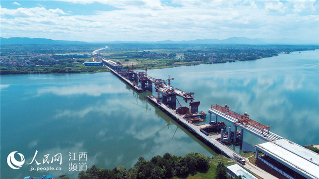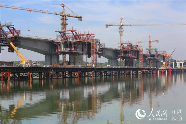 7月17日電17日上午,廣吉高速公路江西泰和北贛江特大橋正在進(jìn)行掛籃施工作業(yè),在藍(lán)天白云、綠水青山襯托下,顯得格外美麗壯觀。泰和北贛江特大橋位于江西省泰和縣萬(wàn)合鎮(zhèn),是廣吉高速公路唯一一座特大橋,是全線控制性工程,大橋總長(zhǎng)1075米,總投資近1.5億元。大橋自2016年11月開工建設(shè)以來,工程進(jìn)展順利,預(yù)計(jì)于今年底前建成合龍,為廣吉高速2019年1月如期建成通車奠定基礎(chǔ)。
