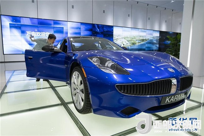 2018年7月4日,一名參觀者在觀看萬向集團旗下公司研發(fā)的、在北美地區(qū)上市的KARMA混動跑車。新華社記者沈伯韓攝