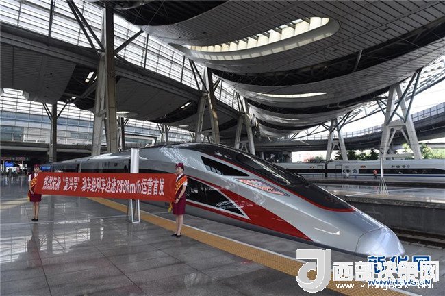 在北京南站拍攝的G13次“復興號”列車(2017年9月21日攝)。350公里時速的正式運營,標志著我國成為世界高鐵商業(yè)運營速度最高的國家。新華社記者羅曉光攝