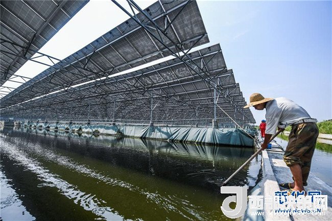 該項(xiàng)目建設(shè)在1800畝魚塘上,形成了板上發(fā)電、板下養(yǎng)魚的獨(dú)特景觀,項(xiàng)目裝機(jī)容量60兆瓦,所發(fā)電量全部并入電網(wǎng)。 近年來,浙江省湖州市大力實(shí)施能源項(xiàng)目,以太陽能、水能、風(fēng)能等清潔能源替代化石能源,因地制宜實(shí)施農(nóng)光互補(bǔ)、漁光互補(bǔ)、林光互補(bǔ),不僅形成了一條集光伏發(fā)電、農(nóng)業(yè)種植、漁業(yè)養(yǎng)殖、林業(yè)休閑、旅游觀光于一體的生態(tài)旅游農(nóng)業(yè)光伏產(chǎn)業(yè)鏈,更有效推動了能源結(jié)構(gòu)的持續(xù)優(yōu)化,為湖州生態(tài)文明建設(shè)注入綠色動能。截至2018年6月底,湖州市新能源發(fā)電裝機(jī)達(dá)到145萬千瓦,比2017年同期增長40%;2018年上半年累計(jì)新能源發(fā)電量8.59億千瓦時(shí),同比增長51%,相當(dāng)于減少煤炭使用量約34.7萬噸,減少二氧化碳排放約85.64萬噸。新華社記者 徐昱 攝