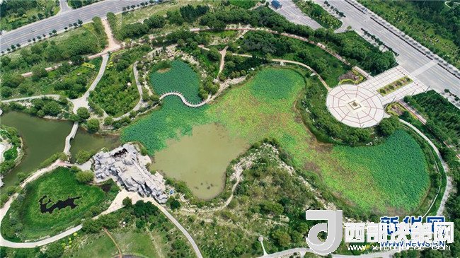 在寧夏石嘴山大武口發(fā)電廠第二排灰場(chǎng)上建起的石嘴山人民公園(7月31日無(wú)人機(jī)拍攝)。 新華社記者 王鵬 攝