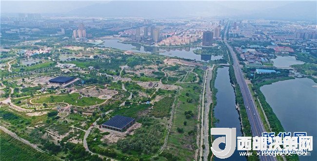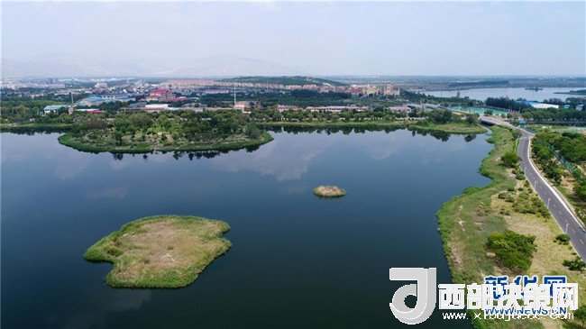 寧夏石嘴山市星海湖及周邊水系貫穿城市(7月31日無(wú)人機(jī)拍攝)。 新華社記者 王鵬 攝
