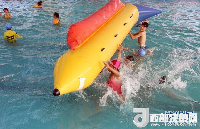 7月21日,小朋友在山東省棗莊市文化廣場游泳池內戲水度暑。 新華社發(fā)(孫中喆 攝)
