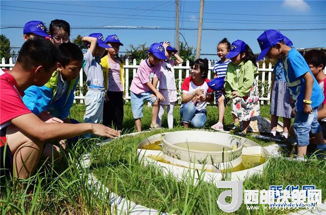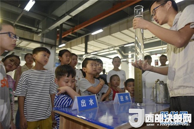 8月2日,小朋友在安徽省合肥市蜀山區(qū)井崗鎮(zhèn)清溪凈水廠的水質采樣點觀察進水與出水的區(qū)別。 新華社發(fā)(葛宜年 攝)