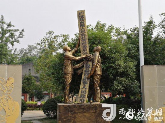 向陽(yáng)鎮(zhèn)幸福廣場(chǎng)上“人民公社摘牌”雕塑。(記者陳曦 攝)