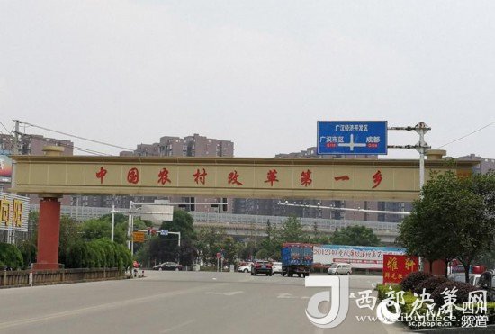 “中國(guó)農(nóng)村改革第一鄉(xiāng)”牌坊。(記者陳曦 攝)