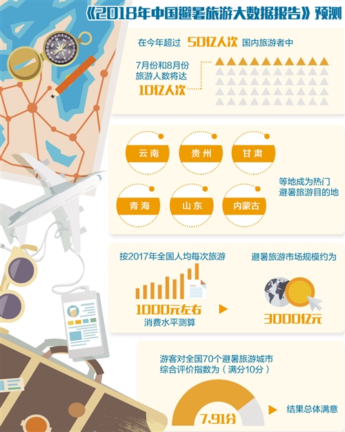 據(jù)中國旅游研究院等單位發(fā)布的《2018年中國避暑旅游大數(shù)據(jù)報告》(下稱《報告》)預測,在今年超過50億人次國內旅游者中,7月份和8月份旅游人數(shù)將達10億人次,占全年游客數(shù)量的五分之一。其中,避暑旅游規(guī)模預計占一半,約5億人次?!秷蟾妗贩Q,這一數(shù)字將使中國成為全球最大的避暑旅游市場。
