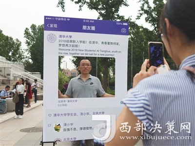 清華園內(nèi),隨處可見與錄取通知書合影留念的景象。今年的錄取通知書一亮相就成了“網(wǎng)紅”,通知書中夾帶了一張3D“二校門”,打開通知書“二校門”就會“躍然紙上”,初來乍到自然少不了和“網(wǎng)紅”合影。