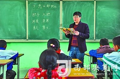 在甘肅省永靖縣小嶺鄉(xiāng)土門村土門小學(xué),校長(zhǎng)鮮虎給一年級(jí)學(xué)生上語(yǔ)文課。新華社記者 范培珅攝