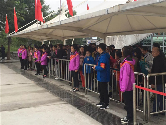 在雙節(jié)來臨前,集團在景區(qū)岔路口及游客易聚集區(qū)新增設多處游覽導示牌,向游客指明各個方向的旅游景點、區(qū)位及服務設施;在節(jié)前對景區(qū)電子票務系統(tǒng)進行了改造升級,將在國慶假日期間實現(xiàn)電子門、車票掃碼入園功能;公布景區(qū)400服務電話(400—0913—777),設立7部客服熱線,度節(jié)期間24小時全天開通,確保游客咨詢渠道通暢;設立6處由各相關單位共同參與的綜合旅游咨詢投訴臺,強化度節(jié)期間的綜合信息處置能力;通過多渠道提前對外發(fā)布景區(qū)預警信息,每兩小時在景區(qū)LED屏公布索道上站、下站以及售票大廳游客排隊等候情況,告知游客錯峰出行;在游客中心、瓦廟溝、華山門、太華索道下站設立4個免費供水點,解決度節(jié)期間游客數(shù)量劇增后的飲水難題;在游客中心安排文藝演出,進一步提升游客的旅游體驗;在重點區(qū)域共準備4萬余件雨衣,確保及時應對景區(qū)降雨天氣;在主峰區(qū)儲備1000件棉衣、100箱方便面、20箱火腿、1000包壓縮餅干、110件水等應急物資;在西線索道、東線索道上站備足500人次的應急物資,并在索道吊廂內(nèi)配備應急箱。此外,集團進一步對基礎設施進行了維護維修,在景區(qū)鎮(zhèn)岳宮、南天門、望河樓、王母宮等關鍵位置試點的新型生物酶全降解環(huán)保廁所將于9月20日前投入使用,能夠有效實現(xiàn)景區(qū)廁所“零排放、零污染”。