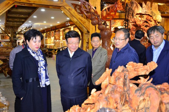 張建龍首先來(lái)到烏馬河木藝文化小鎮(zhèn),詳細(xì)了解小鎮(zhèn)規(guī)劃布局和建設(shè)發(fā)展情況,通過(guò)觀看小鎮(zhèn)宣傳片,現(xiàn)場(chǎng)參觀小鎮(zhèn)服務(wù)中心、木藝產(chǎn)品店,對(duì)伊春市木藝文化產(chǎn)業(yè)發(fā)展表示高度肯定。他指出要繼續(xù)突出原生態(tài)特色,加強(qiáng)創(chuàng)新創(chuàng)意設(shè)計(jì),滿足人民群眾對(duì)林業(yè)產(chǎn)品多樣化的需求。走進(jìn)美江木藝公司,就如同走進(jìn)了藝術(shù)的殿堂,制作精良的木拼畫(huà)、惟妙惟肖的根雕、造型別致的樹(shù)榴工藝產(chǎn)品,一件件精美的木制工藝品,令人目不暇接。張建龍仔細(xì)觀賞這些木制產(chǎn)品,向企業(yè)負(fù)責(zé)同志詳細(xì)了解產(chǎn)品創(chuàng)意設(shè)計(jì)和市場(chǎng)銷售等情況。勉勵(lì)企業(yè)要再接再厲,繼續(xù)做好產(chǎn)品研發(fā),全面提升工藝水平,創(chuàng)造出更多更好的生態(tài)特色產(chǎn)品,進(jìn)一步增強(qiáng)林業(yè)發(fā)展的活力與動(dòng)力。
