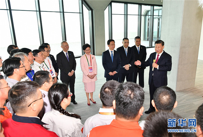 10月23日上午,港珠澳大橋開通儀式在廣東省珠海市舉行。中共中央總書記、國(guó)家主席、中央軍委主席習(xí)近平出席儀式,宣布大橋正式開通并巡覽大橋。這是習(xí)近平會(huì)見大橋管理和施工等方面的代表,同他們親切交談。 新華社記者殷博古攝