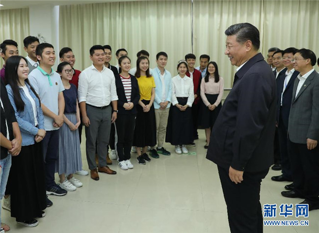 10月22日至25日,中共中央總書記、國(guó)家主席、中央軍委主席習(xí)近平在廣東考察。這是10月24日下午,習(xí)近平在廣州考察暨南大學(xué)時(shí)同部分港澳臺(tái)同胞和海外僑胞學(xué)生交流。 新華社記者鞠鵬攝