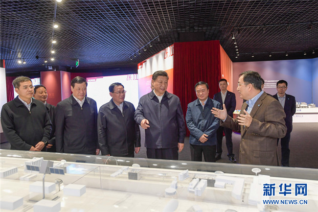 11月6日,中共中央總書記、國家主席、中央軍委主席習近平在上??疾?。這是習近平在張江科學城展示廳考察。 新華社記者 李學仁 攝