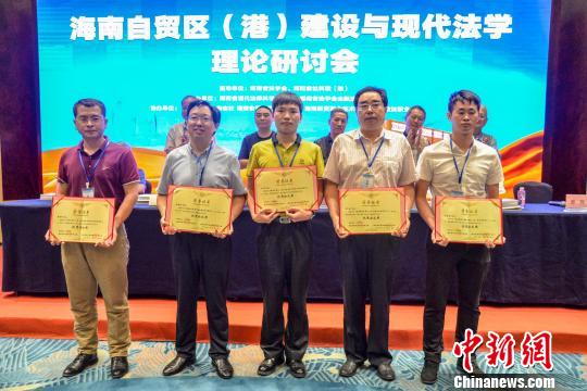 圖為海南省法學會向海南自貿(mào)區(qū)(港)法治建設優(yōu)秀論文撰寫者頒獎?!『閳赠i 攝