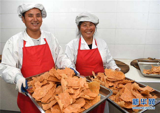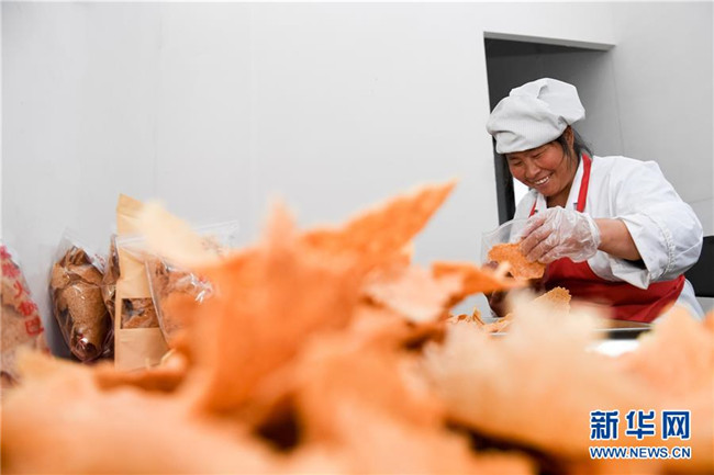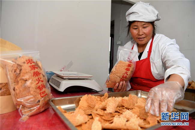 今年49歲的汪明祥和47歲的姚新花是安徽省涇縣黃村鎮(zhèn)沙元村的一對(duì)農(nóng)民夫妻。2013年,汪明祥突發(fā)疾病花光了家里的積蓄,并喪失了一定的勞動(dòng)能力。2014年,汪明祥一家被確定為建檔立卡貧困戶(hù)。為了靠自己的雙手實(shí)現(xiàn)脫貧,汪明祥和妻子姚新花在家里開(kāi)始生產(chǎn)手工鍋巴,雖然收入不高,但是經(jīng)濟(jì)狀況慢慢好轉(zhuǎn)起來(lái),于2016年順利實(shí)現(xiàn)脫貧。 脫貧后的夫妻倆開(kāi)始琢磨如何進(jìn)一步發(fā)展自家的手工鍋巴生意。今年,汪明祥和妻子姚新花利用當(dāng)?shù)胤鲐毿☆~貸款和自籌資金創(chuàng)辦的強(qiáng)源鍋巴廠(chǎng)投產(chǎn)。由于口味地道,價(jià)格不高,汪明祥家的鍋巴受到市場(chǎng)的歡迎,平均每天生產(chǎn)鍋巴50余斤,日均銷(xiāo)售額400多元。“不等不靠,甩窮帽,我們夫妻倆靠手藝脫了貧,也有信心實(shí)現(xiàn)致富。”汪明祥說(shuō)。新華社記者 劉軍喜攝