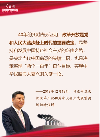 40年的實踐充分證明,改革開放是黨和人民大踏步趕上時代的重要法寶,是堅持和發(fā)展中國特色社會主義的必由之路,是決定當代中國命運的關鍵一招,也是決定實現(xiàn)“兩個一百年”奮斗目標、實現(xiàn)中華民族偉大復興的關鍵一招。