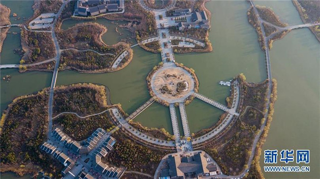 這是2018年3月13日拍攝的位于徐州賈汪區(qū)的潘安湖濕地公園一角(無人機拍攝)。新華社記者 季春鵬 攝