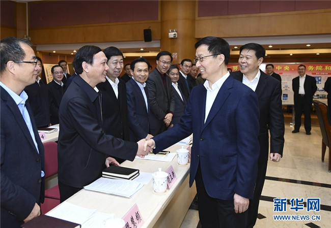 2月18日,中共中央政治局常委、國務(wù)院副總理韓正到國家稅務(wù)總局調(diào)研并主持召開座談會。 新華社記者謝環(huán)馳攝