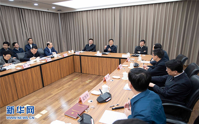 3月18日,中共中央政治局常委、國務院副總理韓正到住房和城鄉(xiāng)建設部調(diào)研并主持召開座談會。 新華社記者 李濤 攝