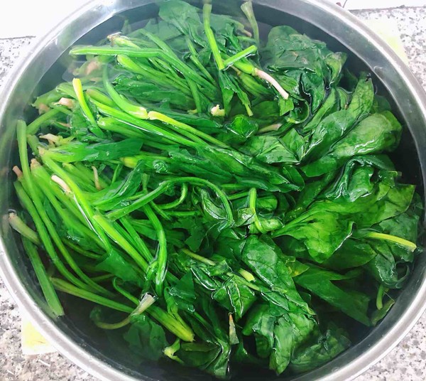 2.鍋中燒開水放入菠菜焯水至菠菜剛剛變色即可時間不可過長