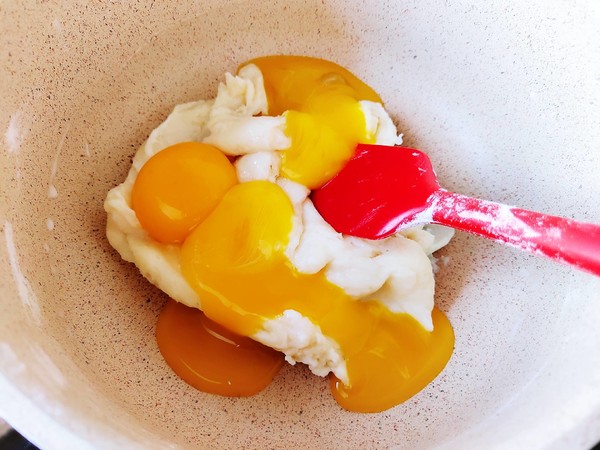 4.上下翻拌成面糊,把蛋黃加進(jìn)去了
