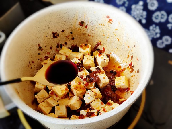 6.再來半勺老抽醬油。