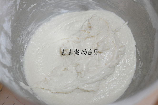 3.用筷子和成細(xì)膩、濕潤的面團(tuán)。蓋上保鮮膜,將面團(tuán)醒發(fā)20分鐘。